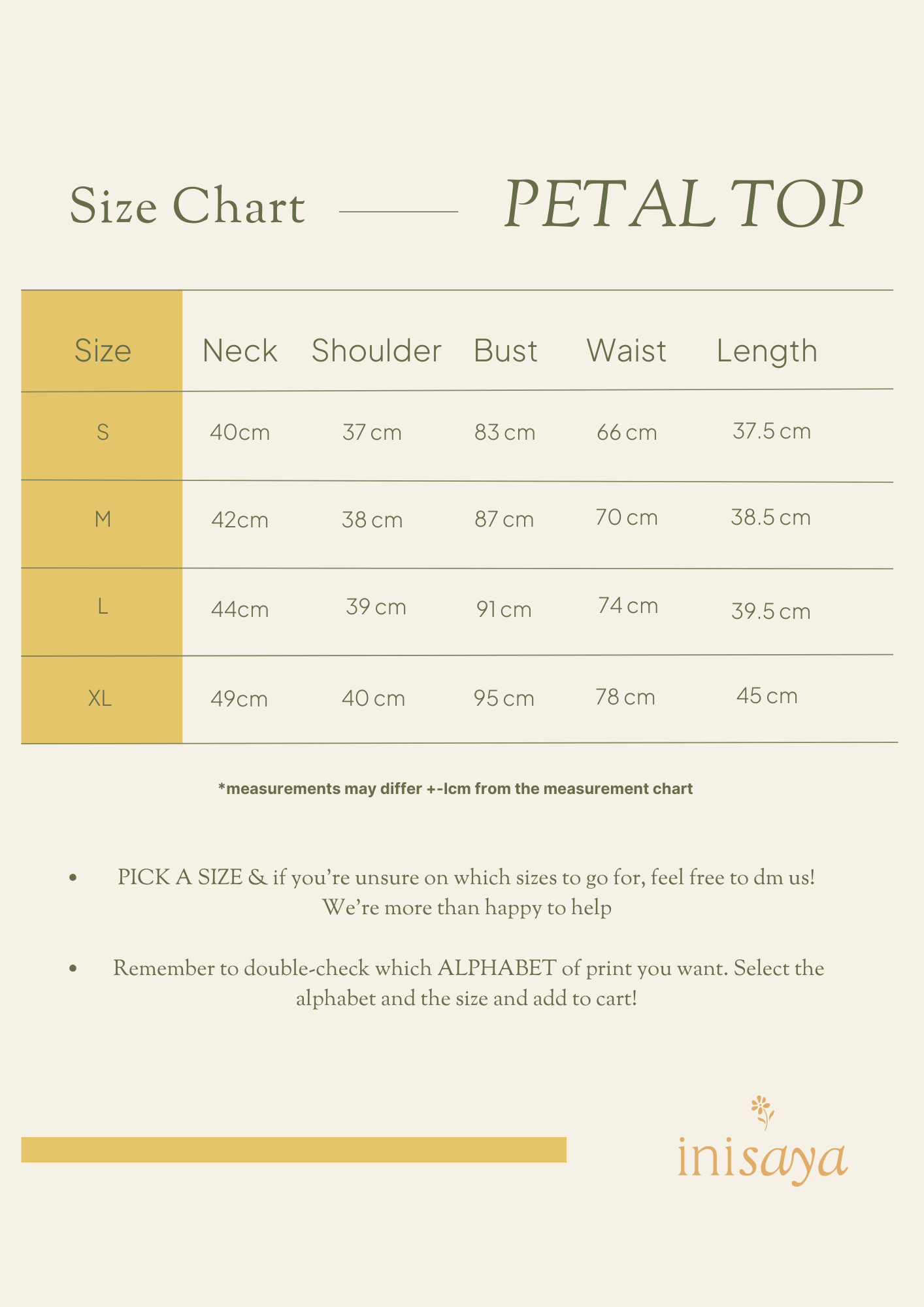 With flowy short sleeves and a silhouette that gently follows the shape of your body, the Petal Top offers both structure and softness. Perfect for warm days, relaxed outings, or dressed-up moments this is effortless elegance in its breeziest form.